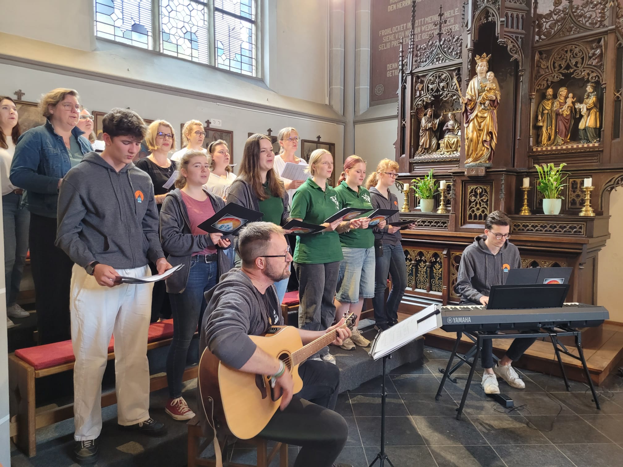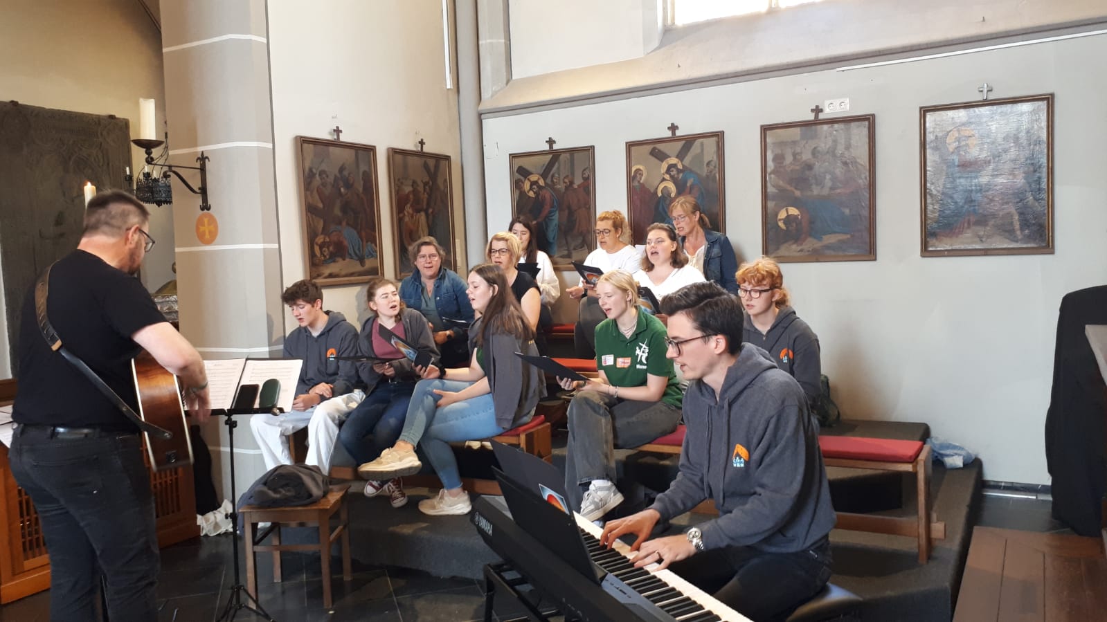 Am 7. Mai waren wir in unserer evangelischen Schwestergemeinde beim Vorstellungs-GoDi der Konfirmand*innen im Einsatz. Wir sind sehr dankbar dafür, dass wir den tollen, lebendigen und sehr persönlichen Gottesdienst musikalisch gestalten durften. Besonders, da unsere Mit-JLK'lerin Clara zur Jugendpresbyterin berufen wurde - und Zeit für einen kleinen JLK-Werbeblock gab's auch noch!